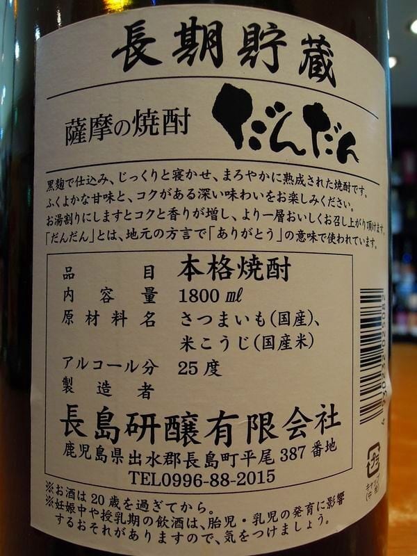 「だんだん」は、赤い色をした長島の土壌に育った味の良いサツマイモ「黄金千貫」芋を原料に 黒麹を用いて醸し じっくりと寝かせた(タンク熟成)た芋焼酎です。