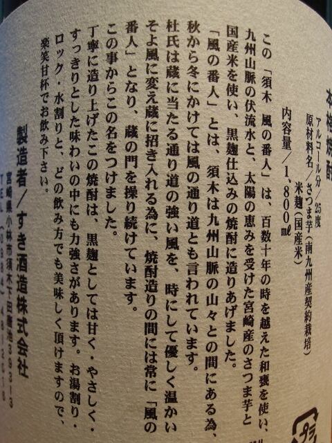【風の番人 (須木 伝承)黒麹 甕壷仕込み 限定品 25度 1800ml】