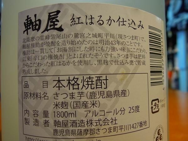 【軸屋 紅はるか仕込み 長期甕貯蔵 (2022年度)本格焼酎 25度 1800ml】