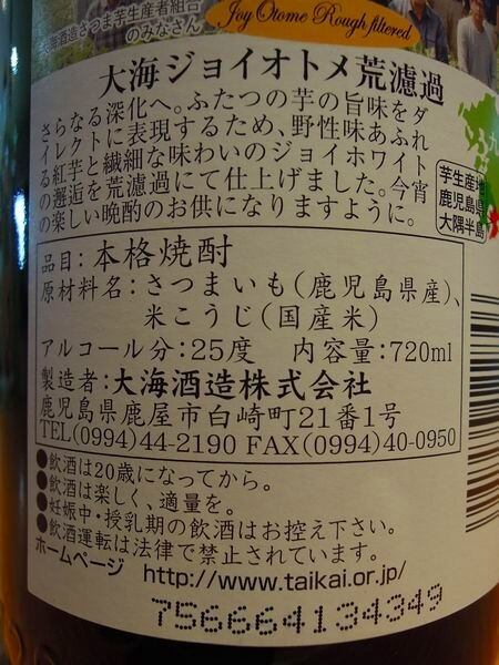 大海 ジョイオトメ 荒濾過 本格焼酎 720ml 25度 大海酒造